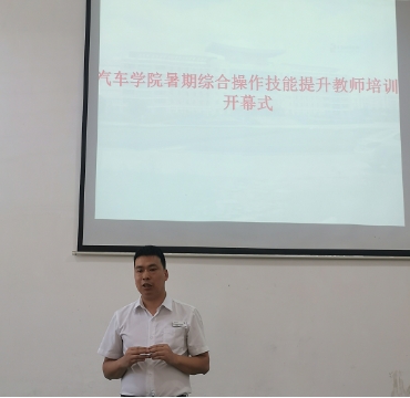 聂进发表培训动员讲话,他指出,为了进一步加强汽车学院教师队伍建设,全面提升教育教学质量,特举办这次暑期培训。在纪律方面,要求参培教师按时参加,注意组织纪律。希望老师能抓住本次培训机会,切实提高自身的技能,为教学质量的提高、学生培养质量的提高和汽车学院的发展打好基础。