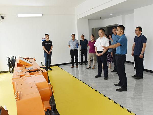 孙法军一行首先考察了我校安全培训与技术服务中心矿山特殊工种实操培训考试基地,参观了农机智能制造、工业机器人、电子信息、动物医学等专业实训室,了解学校专业建设及乡村振兴人才培养工作情况。
