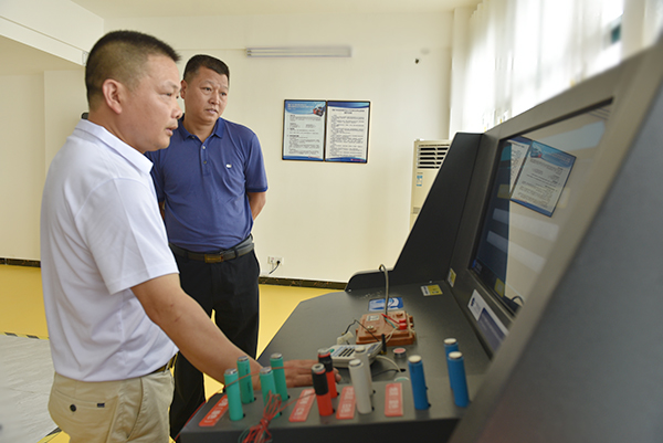 验收组一行在我校党委委员、副校长欧芳等陪同下,认真查看了各实操培训室设备,观看了培训老师现场操作演示后,认为:培训考试基地达到了有关要求,验收合格。