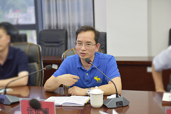 范国正主持座谈会,介绍我校基本情况,并从学生实习、就业、企业对学校专业建设需求三个方面提出此次调研目的。