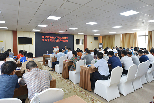 本网讯 9月2日-3日,娄底职业技术学院举行2021年度党务干部能力提升培训班,各党总支部、直属党支部书记、副书记,各党支部书记,党委工作部门正科以上领导干部共79人参加培训,党委副书记王健龙在开班仪式上致辞并全程参与了听课。