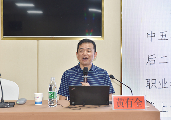下午的培训由重点项目办李宇才主任主持,长沙民政职业技术学院机电专业带头人黄有全教授主讲。黄有全教授是首届湖南省教书育人楷模,全国优秀教师,湖南省黄炎培职业教育奖杰出教师奖。他主讲的专题是《职业教育在线精品课程建设与应用》。黄教授就教师课程建设相关政策做出了解读和预判,就课程建设的思路和方法做了详细的阐述。