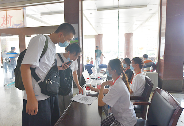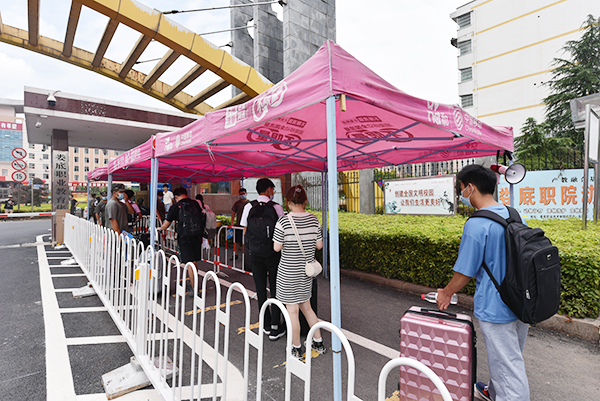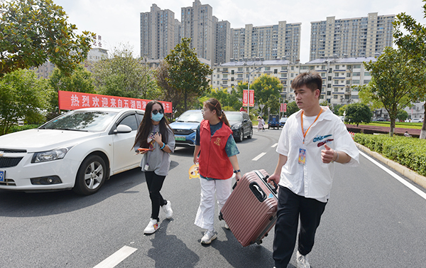 我校今年共招录44个专业,截止记者发稿时止,已经有5441名学生完成“智慧校园app”网上报名,5000余名学生来到现场报到。西藏、贵州等外省学生正在赶来学校的路上。为简化入学手续流程,学工处组织新生入校前在“智慧校园app”上进行网上报名,完成了注册缴费分班分寝等环节。到校后,可直接领取床上用品,拎包入住寝室。
