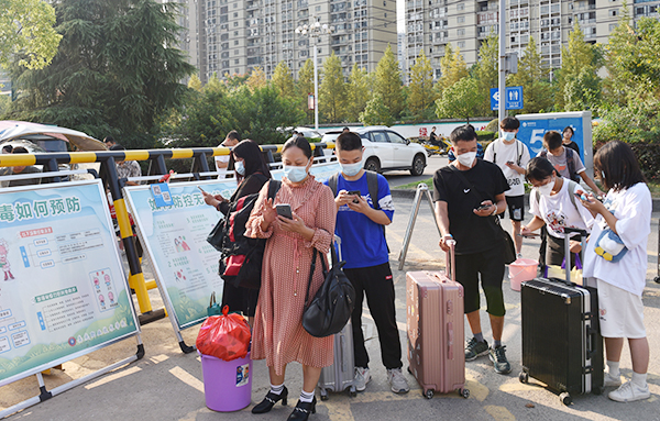 学校高度重视疫情防控常态化条件下的迎新报到工作,精心组织,周密部署,全力保障校园疫情防控规范到位。学校大门前树立着预防新冠病毒的提示牌,新生进入校园前必须出示健康码与行程码,测量体温正常后方可进入校园,报到时需提供14天的自我健康监测表给辅导员。学校保卫处在迎新现场设立多处值勤点、引导车辆进出,积极巡查,保障新生及家长的人身和财产安全。