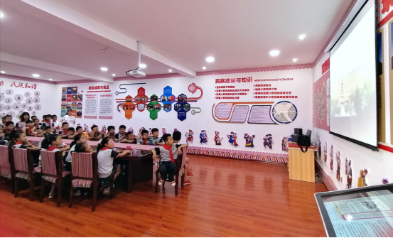 少先队员们聚精会神地听老师介绍各少数民族的文化与风俗。