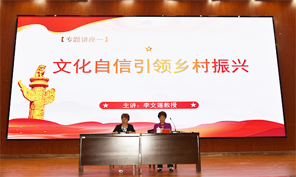 为进一步加强新农村建设,为乡村振兴助力,9月23日下午,我校在学术报告厅举行村干部成长论坛专题讲座第一课——文化自信引领乡村振兴。系列讲座共有四期,每月开展一期。本次课程主讲人是我校原党委书记李文莲教授,农林工程学院院长禹华芳、党总支书记王冬青、村干部定向培养项目负责人刘梅秋以及2020级农村经营管理专业的全体学生聆听了讲座。讲座由刘梅秋主持。
