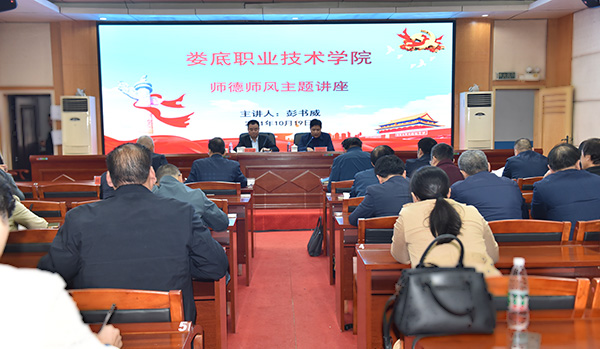 10月19日,娄底市教育局党组成员、市纪委监委驻市教育局纪检监察组组长彭书威应邀来到我校,作师德师风建设专题讲座。党委委员、副校长申晓伟主持,全体在家的校领导、副科以上实职干部聆听了讲座。
