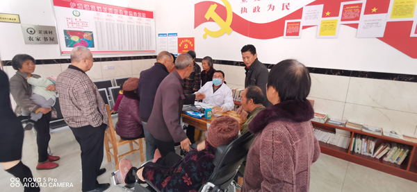 活动现场,村支两委的领导干部们充当志愿者协助引导村民排队检查、咨询、取药。医疗专家们详细询问就诊村民的既往病史及近期身体状况等情况,为村民提出了有效可行的用药和治疗方案。同时对村民进行健康宣教,指导新冠疫情的防控,并免费发放药物。尤其是头颈肩腰腿痛科王谅主任医师发挥其精湛的“小针刀”技术,为前来求医的腰腿痛村民当场施针解除病痛。诊室被求诊的患者围了个水泄不通,王谅医师一连工作了七八个小时后才不得已停下来,对需要进行小针刀治疗的群众告知联系方式,让其到第二附属医院去进行检查、治疗。