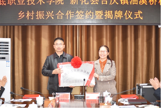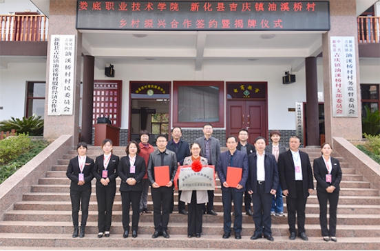11月12日,全国乡村振兴人才培养优质校娄底职业技术学院与全国乡村振兴示范村新化县吉庆镇油溪桥村举行乡村振兴合作签约暨揭牌仪式。“新化县吉庆镇油溪桥村乡村振兴人才培养基地”、“娄底职业技术学院乡村振兴人才培养实训实践基地”正式揭牌。