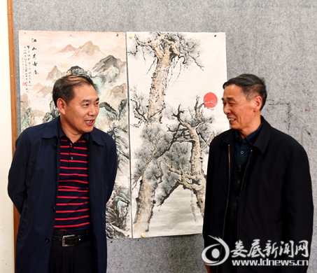 (朱忠义与胡卫平就作品进行交流)
