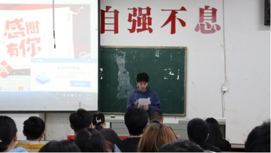 接着由学工干事林莎老师,向获得国家励志奖学金的同学们说明评选“国家励志奖学金”的意义,并对同学们进行感恩教育,要感恩祖国、感恩社会、感恩老师、感恩同学。感恩不是口号,而是长存于心的善意和持之以恒的行动。知恩图报,学会感恩,感谢帮助过你们的人,因为有他们,相信这个世界是如此美好绚烂。常怀感恩之心,我们在人生路上不会孤单;常怀感恩之心,会让我们的人生旅途一帆风顺。