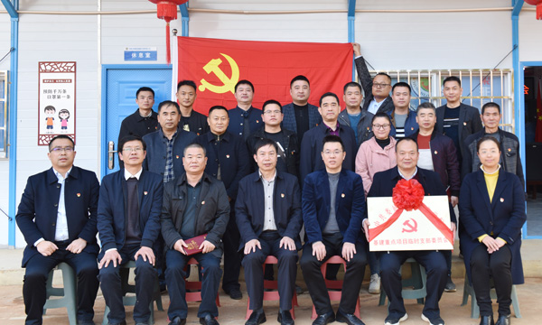 王健龙在讲话中向新成立的临时党支部表示祝贺并为临时党支部授牌,赠送了党旗、党员徽章、学习资料及会议记录本。