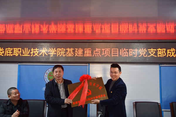 吴文贵宣读了中共娄底职院委员会《关于成立娄底职业技术学院基建重点项目临时党支部的通知》。