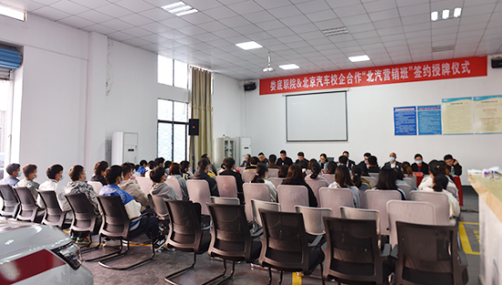 游新娥指出,北汽集团是中国汽车行业骨干企业,能与北汽集团开展深度合作,是对我校办学水平和办学实力的充分肯定,也是对汽车学院专业建设能力的认可。打造职教高地,产教融合、校企合作既是学校高质量发展的需要,更是汽车类专业改造升级、提高水平的必经之路。她希望北汽集团在专业建设、人才培养、师资队伍建设、教学资源开发、学生实习就业等方面给予学校大力支持,相信在校企共同努力下,定能实现互惠共赢的目标,将“北汽营销班”办出特色、办出水平。