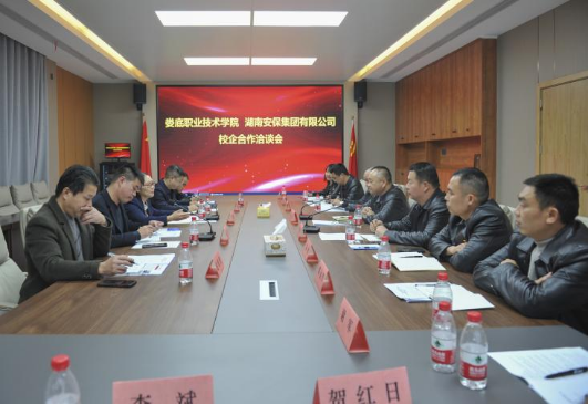 12月1日,我校副校长游新娥率产教融合办主任晏然、汽车学院院长聂进、产教融合办刘云韩老师、汽车学院校企合作联络人赵线然老师赴湖南安保集团进行了调研,并洽谈了进一步的合作事宜。湖南安保集团党委书记、董事长左海,集团党委副书记、总经理刘敏新及公司相关部门负责人出席会议。