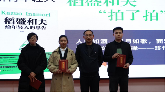 读一本好书,了解一个有意义的故事,分享一段诗意的情怀,体会字里行间的温度,遇见更好的自己。为进一步加强书香校园建设,营造浓郁的阅读氛围,引领青少年在读书中求知,在阅读过程中成长,使阅读真正成为学生的自觉行动和生活需要,积极促进优良学风校风的养成,11月30日,学工处组织在主教楼报告厅开展“书香娄职,阅读成长”为主题的读书沙龙活动,各二级学院优秀学生代表分享对《稻盛和夫给青年人的忠告》一书的学习感悟。学工处处长李规、团委书记石磊、学工处副处长杨帆、邱玉贵、肖靓出席读书分享会。活动由农林工程学院2020级农管1班的邹晶欣同学主持。