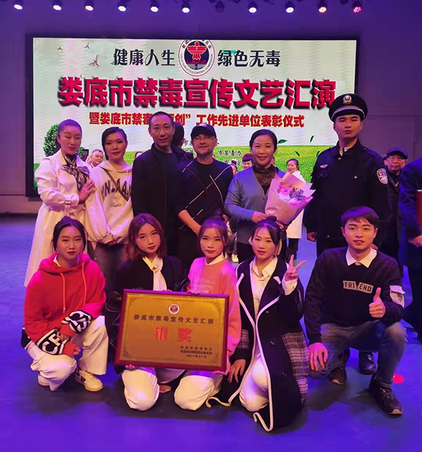 此次活动由娄底市禁毒委员会、市禁毒协会主办,娄底人文科技学院、涟钢集团以及各县市区单位都选送了作品参赛,大赛设一等奖1个、二等奖2个,三等奖3个,新化县的《追光》荣获金奖,我校获得银奖第一名。《别让青春“毒”来“毒”往》是团委祖宾老师导演的音乐情景小品,由学校张波、曾莉老师携学生王思敏、黄延宇、王粤湘等同学合作完成,中职部龚义老师负责节目中穿插的舞蹈编排。节目内容贴近青年人校园生活,运用语言及歌唱手法,加入舞蹈意识流元素,故事情节生动感人,呈现方式新颖特别,主要教育青年人要远离毒品,永远对毒品说不,具有现实教育意义,后续组委会还将会安排在娄底各县市巡回宣传演出。
