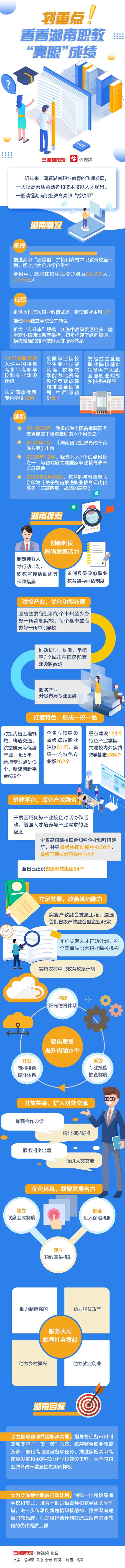 全省中、高职在校生规模分别为82.2万人、72.85万人;新设职业本科1所,推动4所独立学院合并转设;近5年,新增专业点973个,新建创新平台629个……近年来,湖南职业教育飞速发展,一大批高素质劳动者和技术技能人才涌出。12月10日,湖南职业教育大会在长沙召开,一图带你读懂湖南职教亮眼“成绩单”。