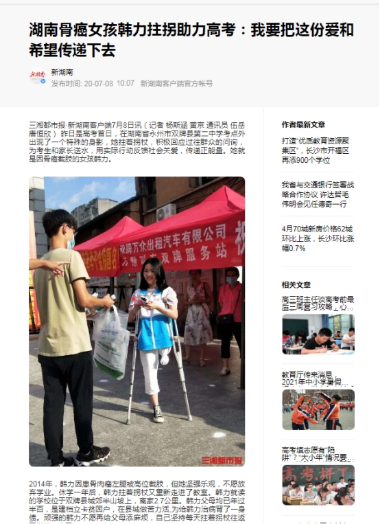 2014年,韩力因意外被迫截掉了左腿。她自强不息,努力学习,2019年,考上娄底职业技术学院,成为商学院2019级电商1班学生。学校高度重视,积极将资助和育人有机融合,把“扶困”与“扶志”紧密结合,以立德树人为根本,构建物质帮助、道德浸润、精神激励有效融合的资助育人长效机制,从入学、资助、生活等多方面关心、帮助韩力。在生活上,商学院将韩力的寝室从二楼调整到一楼,让韩力住在下铺,安排辅导员、学生干事随时关注韩力情况,让班上同学在平时上课、生活、出行等各方面帮助她。在经济上,商学院积极为韩力申请助学金,不仅解决了韩力的经济问题,减少父母的负担,而且也点燃了韩力在大学阶段奋斗的激情。