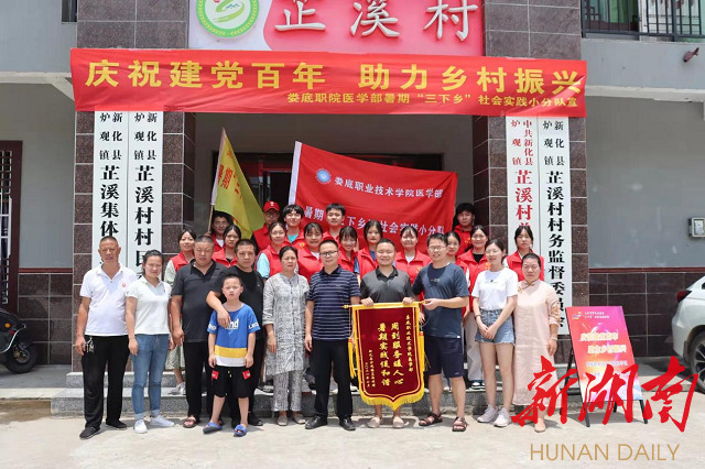 今年暑假,娄底职院医学部“建设美丽新乡村小分队”在校团委和医学部的领导与支持下,前往娄底市新化县炉观镇芷溪村开展实践。该实践团队深入调研了芷溪村当地人口结构,身体健康状况,医疗条件,乡镇卫生院服务内容,功能康复需求等;参观走访了当地的卫生室以及扶贫工作;与村干部、扶贫驻村干部等进行了交流访谈;在实践地开展了调查研究、医疗服务、防溺水、健康讲座、关怀陪伴、爱心支教等一系列志愿服务,深受当地村民的喜爱。