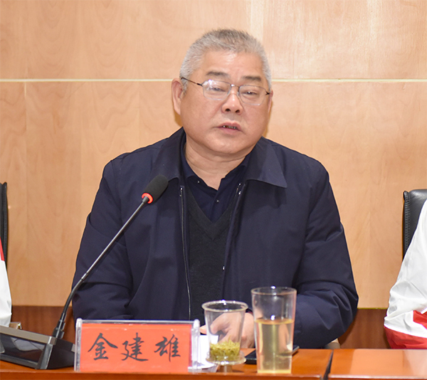 金建雄致辞,向各级红十字会、捐献者家属、志愿者表示最崇高的敬意,指出遗体捐献者为“大体”老师、“无语良师”,他们完美诠释了生命的价值与意义,这项高尚的行为值得所有人尊重。希望医卫专业的同学们将“无语良师”的大爱薪火相传,弘扬无私的志愿者精神,为娄底市医疗卫生健康服务贡献更大的力量。