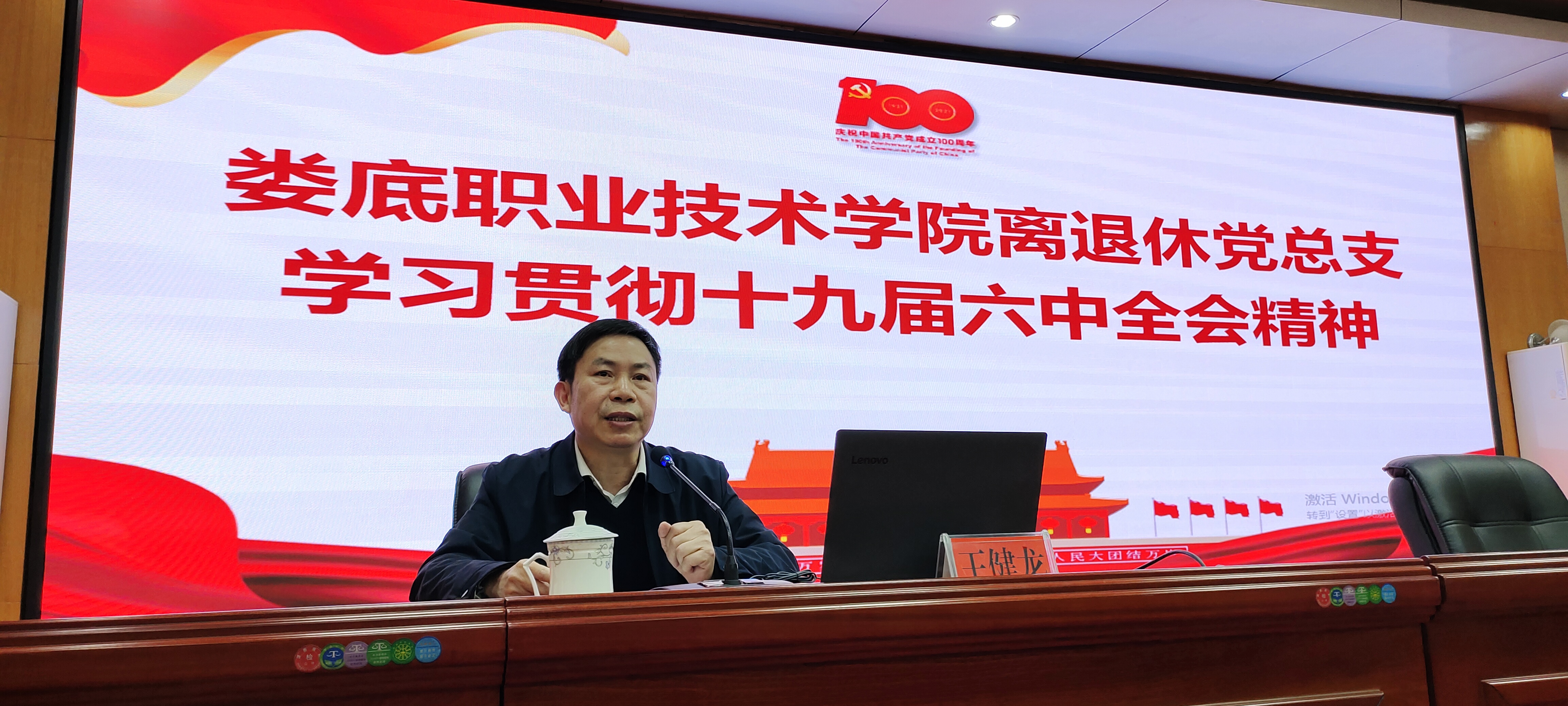 为深入学习贯彻党的十九届六中全会精神,12月17日上午,离退休党总支在多告功能报厅开展学习贯彻党的十九届六中全会专题宣讲。学校党委副书记王健龙讲授,离退休党总支书记张波主持,全校180余名离退休党员和退休同志参加。