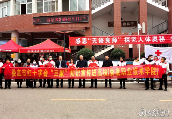 (12月15日上午,红十字遗体捐献娄底职业技术学院医学院登记接收站授牌暨“三献”知识宣传进高校活动启动)