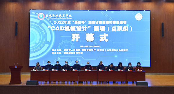 12月25日下午,在我校学术报告厅,由娄底市人民政府、湖南省教育厅、湖南省人力资源与社会保障厅主办,我校承办的2022年度“楚怡杯”湖南省职业院校技能竞赛高职高专组装备制造大类CAD机械设计赛项举行开幕式,来自全省36所高职和技工院校参赛团队的领队、指导老师和104名选手参加。