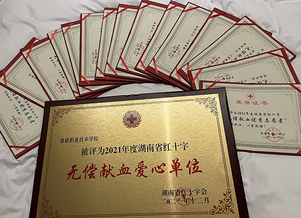 12月28日上午,湖南省红十字会无偿献血志愿服务年度表彰大会在长沙召开。会上,我校被评为2021年度湖南省无偿献血爱心单位,石磊、禹云、杨倩赟等16名师生获得湖南省红十字会优秀志愿者称号。
