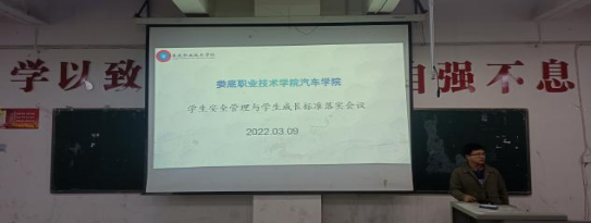 保障学生安全是底线工作,底线工作不能破底线;落实学生成长标准,打造更加风清气正、导向清晰的积极激励氛围,推进三全育人工作成效落地。汽车学院于2022年3月9日下午在主教楼110教室召开会议,就推进网格管理与学生成长标准体系运行等工作进行部署。党总支书记苏志华、学工干事、全体辅导员、所有学生网格成员等160余人参加会议,本次会议由学工副院长李铁侠主持。