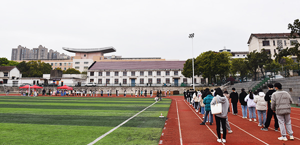 在我校工作人员的精心组织下,每个检测点都显得井然有序。采样人员先在等候区排队等候,并主动出示本人“健康码”,工作人员和医务人员一起核对其身份信息,做好记录。为避免人员聚集,所有师生严格按照疫情防控相关规定,候检排队保持1米间距,做到不插队、不聚集,采样过程中避免接触采样台相关物品。采集完成后,在志愿者的指引下,从出口处依次离开采样现场。