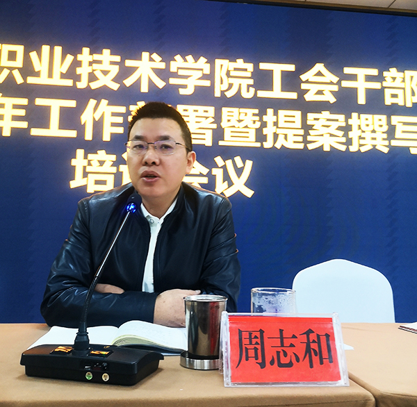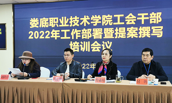 3月25日上午,我校在综合楼视频会议室举办工会干部2022年工作部署暨提案撰写培训会议。学校党委委员、副校长、工会主席周志和,工会常务副主席曾素纯,工会副主席刘轶中,公共课教学部主任付鹏在主席台就坐,各分工会主席、副主席、组长参会。会议由刘轶中主持。
