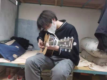 (在寝室里面练习弹吉他)