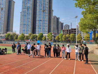 (21级机制2班正在田径场进行户外素质拓展活动)