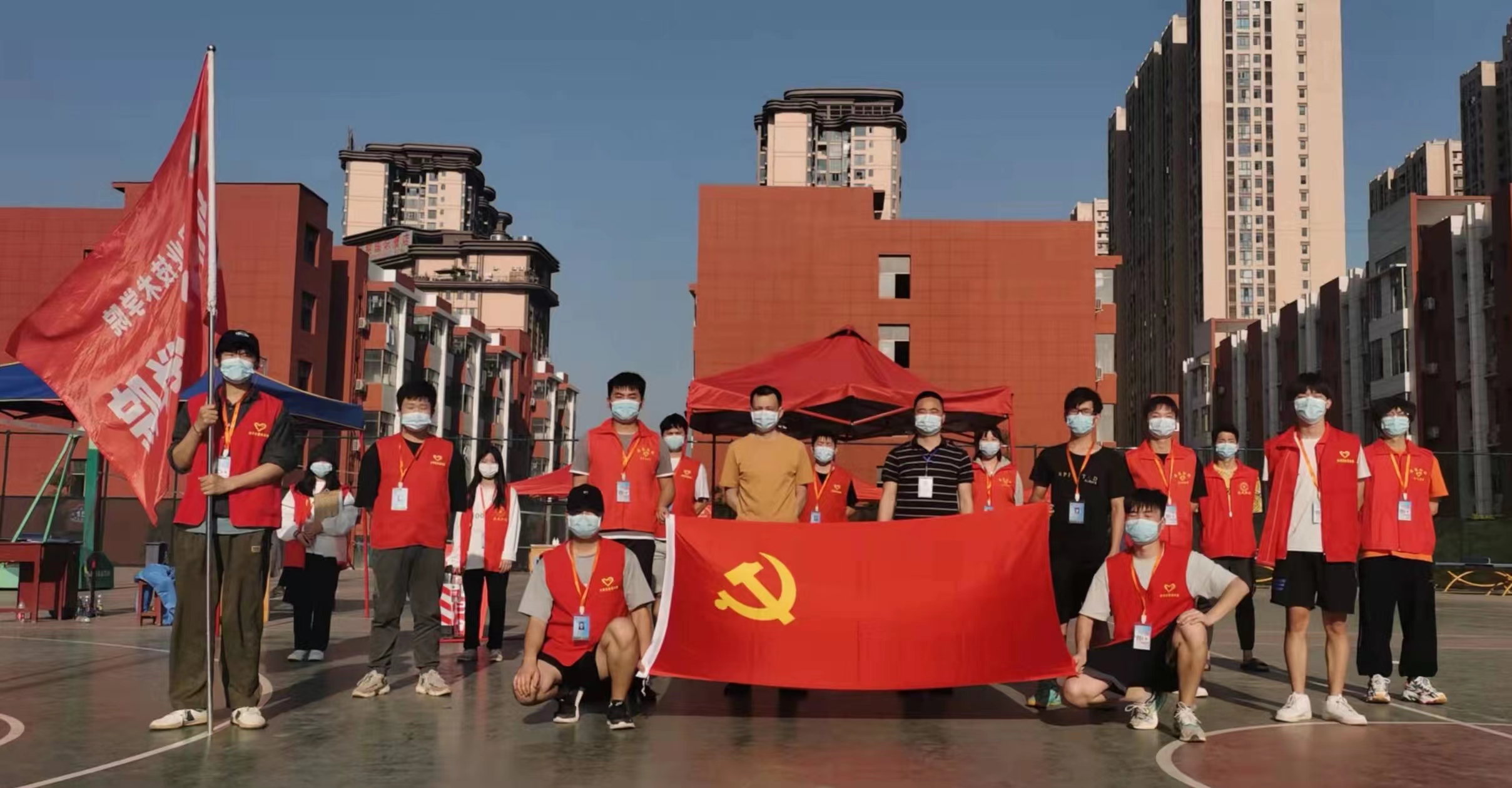 (4月8号同学们在篮球场排队做第二次核酸检测)