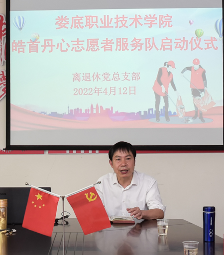 4月12日上午9点,我校离退休老同志“皓首丹心”志愿队成立暨“共同抗疫 携手同行”公益活动启动仪式在综合楼七楼“党员活动之家”举行,活动主旨为响应省、市“金秋老党员”之家建设要求,进一步弘扬志愿精神,打造我校“金秋志愿红”志愿服务品牌。党委副书记王健龙、组织部部长吴文贵出席,离退休党总支支委成员及皓首丹心志愿者代表与会。启动仪式由离退休党总支书记张波主持。