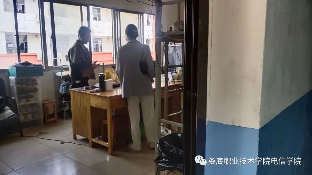 下午,学工副院长邓明亮带领各班辅导员及学生会干部对各年级学生宿舍开展卫生检查工作。发现大部分寝室卫生保持良好,做到了阳台洗漱池和桌面干净整洁,生活用品及学习用品摆放整齐;地面干净,门口无垃圾堆放,符合学院对寝室卫生管理的要求。