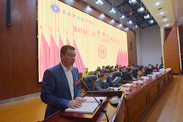 党委委员、副校长、工会主席周志和向大会作工会工作报告,题为《凝聚同心共识,谱写奋进篇章,为深入推进“双高校”建设作出新贡献》。他指出,学校工会全面提升新时代服务教职工的能力与水平,组织和动员广大教职员工在民主管理、权益维护、文体活动、队伍建设等方面取得了较显著的成绩。2022年工会重点工作和主要任务是:一要扛牢政治责任,思想引领有新气象;二要提高服务质量,职工维权服务有新担当;三要紧扣学校主题,建功高质量发展有新作为;四要强化阵地建设,打造智慧工会有新活力;五要强化队伍建设,工会干部能力有新提升。