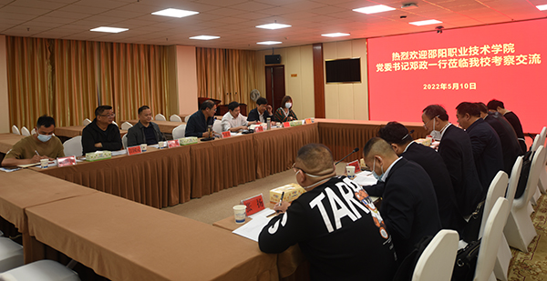 邓政在讲话中表示,近年娄底职院的发展有目共睹,希望通过这次考察交流,学习娄底职院在党建方面的先进做法和党委换届中的成功经验。
