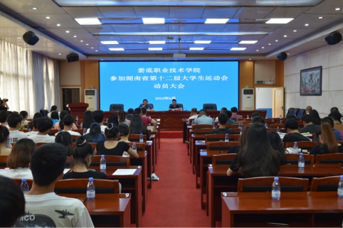 6月9日下午,我校召开参加湖南省第十二届大学生运动会动员大会。副校长周志和、游新娥、相关部门负责人、各二级学院学工副院长、全体教练员和运动员出席会议,会议由公共课部主任付鹏主持。