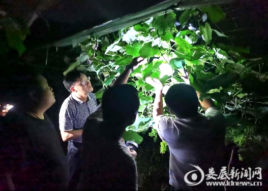 娄底新闻网讯(通讯员 欧阳琦 曹琰)6月9日晚8点,娄底职院“十百工程”技术服务组成员谢大识接到娄星区万宝镇石塘村丰年农业科技有限公司黄和平打来的电话:“我们的葡萄树出现了病叶,下一步怎么处理啊?有时间能帮我们指导一下吗?”考虑到当下正值葡萄量产高峰,高温天气容易导致掉果损产,谢大识立即打电话给正在中阳村院村合作基地的曾玉华教授。曾玉华与在基地实践的农管班学生李超凡连夜驾车出发,会合谢大识,三人开车20公里赶往万宝镇石塘村。