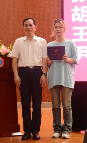 党委书记朱忠义为2022届省级优秀毕业生代表颁发荣誉证书