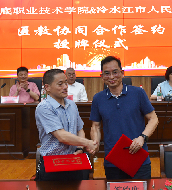 接着,娄底职业技术学院院长张征澜与冷水江市人民医院党委书记张熊在与会人员的共同见证下签署合作协议。