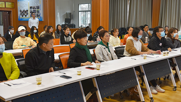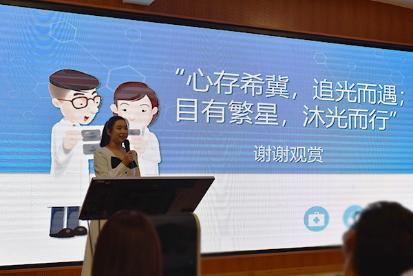 主持人宣布此次大赛获奖名单。颜哲、谭清清获得第一名,黄紫嫣、刘孜获得二等奖,王倩、刘雪钰、邱梦艳、向玉婷、才木多姐、周湘杰、向思怡获得三等奖,商学院、临床医学学院、艺术设计学院、电子信息工程学院荣获最佳组织奖。(文/向雅婷 图/李思)