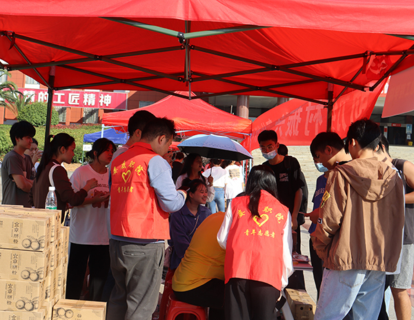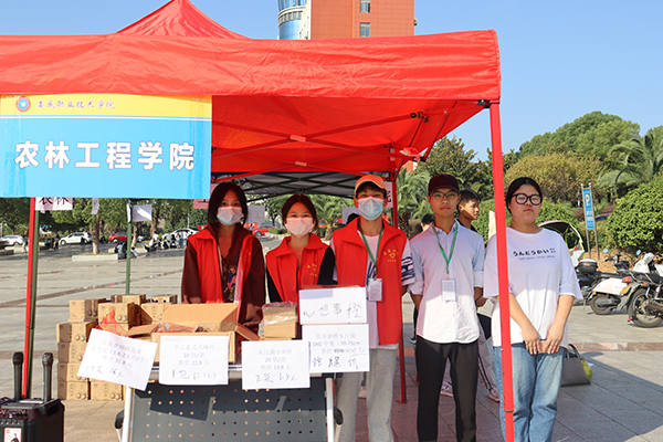 11月11日上午,我校的“消费助农”线下营销活动在文化广场举行。活动由创新创业学院主办,校团委协办,各二级学院的参赛团队参与。