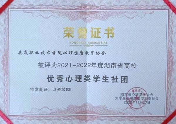“2021-2022”年度湖南省高校优秀心理类学生社团