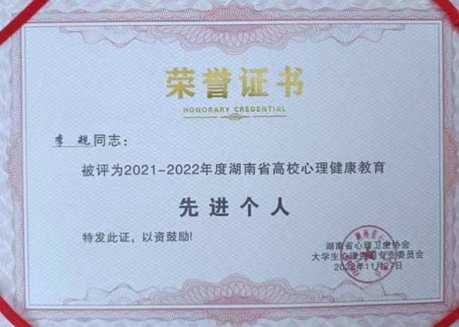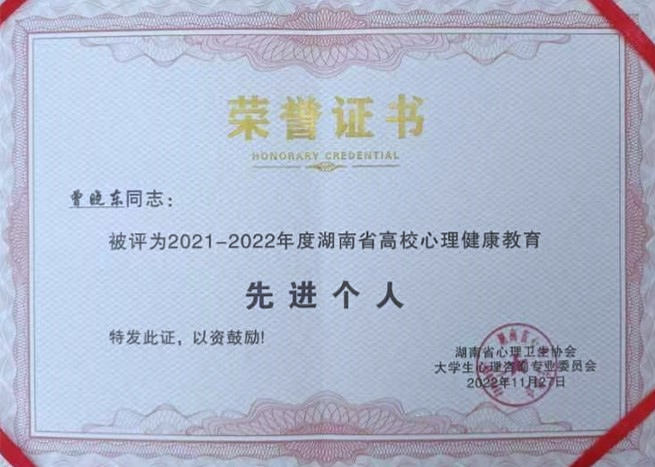 “2021-2022”年度湖南省高校心理健康教育先进个人