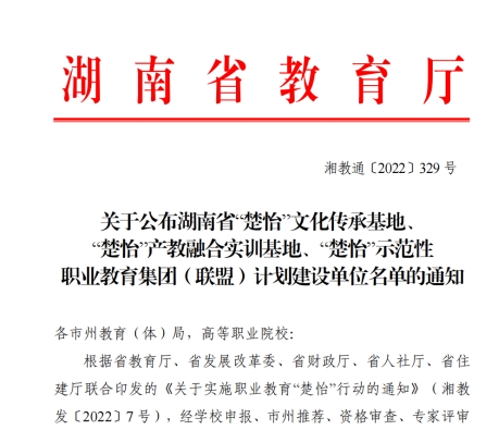 这是我省深入学习贯彻党的二十大精神,实施职业教育“楚怡”行动的具体举措。娄底职院抢抓机遇,积极建设,已成功成为“楚怡”双高校建设单位,以特色专业建设与改革发展创新为依托,以特色文化基地建设为抓手,将进一步优化环境,凝聚优势与特色资源,全力建设好省级“双高校”,争创国家“优质校”。(欧阳琦)
