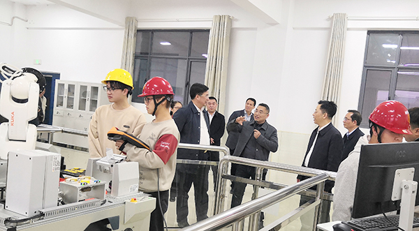 夏智伦一行调研考察了乡村振兴示范馆、农林实训基地、智能制造大楼,参观了农产品直播营销实训课堂和工业机器人技术仿真实训课堂。