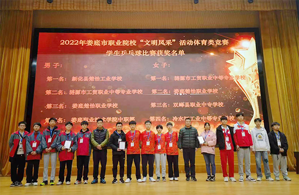 3月25日,娄底市职业技术学院中职部向志雄老师,担任教练,和师生组建了乒乓球队伍参加了娄底市教育局主办的娄底职业院校"文明风采"体育竞赛,在多个县市区等十多所职业院校比赛队中,经过激烈的初赛,决赛,脱颖而出,获得了全市比赛的第四名。